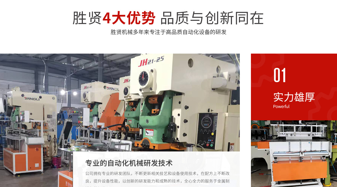 東莞市勝賢機(jī)械設(shè)備有限公司,是一家專(zhuān)業(yè)從事金屬制罐包裝行業(yè)的整套自動(dòng)化設(shè)備和模具開(kāi)發(fā)、制造與銷(xiāo)售的公司,擁有成熟的技術(shù)和創(chuàng)新開(kāi)發(fā)能力。我們擁有有一批多年從事設(shè)計(jì)、研究開(kāi)發(fā)的工程師,和設(shè)備、模具制作的技術(shù)人才。不斷推進(jìn)制罐行業(yè)向高效、環(huán)保、節(jié)能、操作簡(jiǎn)易化的方向發(fā)展。